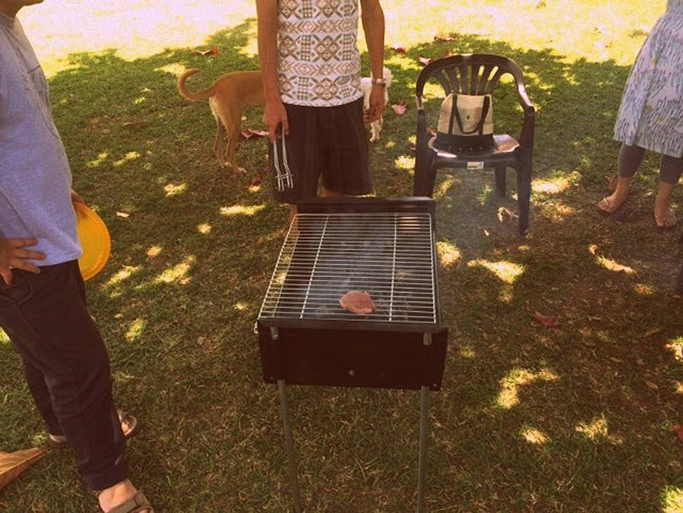 「炭は傾斜をつけて積む事で、厚い方は肉を焼くのに、薄い方は保温に使うんですよ!」 知りうる限りのBBQ知識を披露して見せる事で、涙ぐましい「自分はあなたたちとは違うんです」アピールを執拗なまでに繰り返し互いを牽制しあうも、所詮聞き齧っただけの知識の悲しさ。そもそも肝心の炭に上手く火が付かず肉一枚満足に焼け無い。