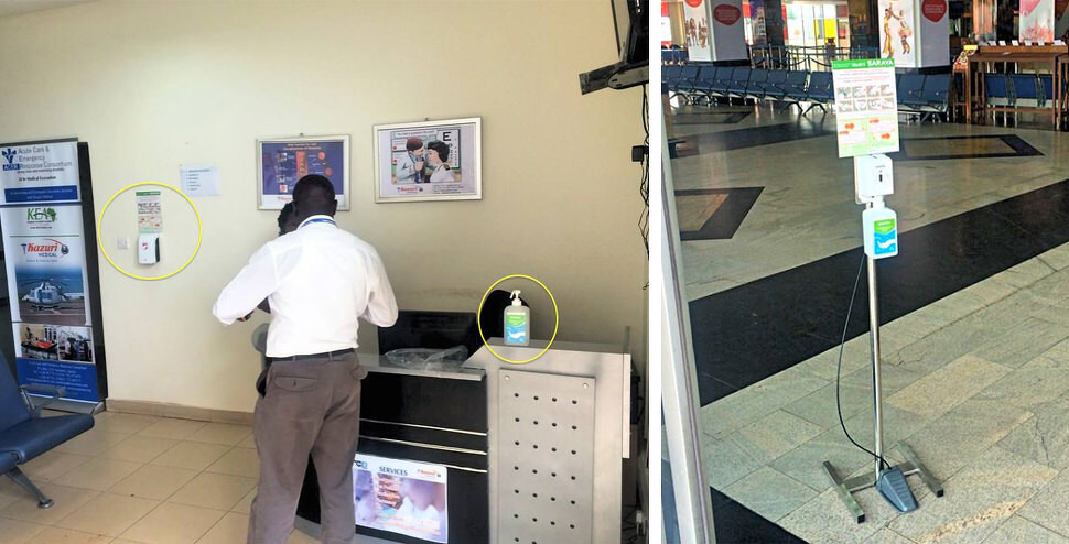 2015.08.03 サラヤの販売する「Alsoft V」が水際対策として活躍しています。 写真はウガンダで一番大きな国際空港であるエンテベ空港。 Alsoft Vは空港内のあらゆるところで目にすることができます。とくに目立つのは入国管理のデスクの上。今回は到着ロビーにも設置個所を増やし、更に消毒液の使い方を説明したポスターも設置しました。 ウガンダにいらっしゃった際には是非Alsoft Vを使用してみてください。 < 【アルコール消毒剤とムスリム】 【新しいインターン生が来ま... >