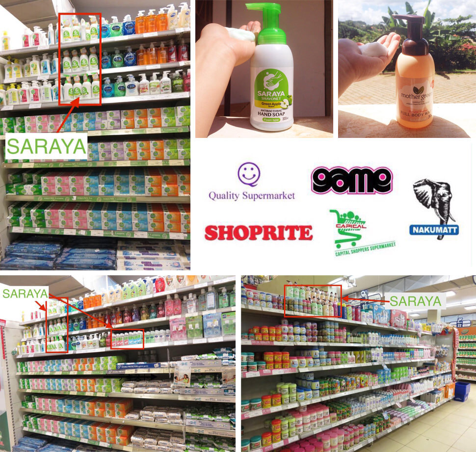 ウガンダへお越しの際は、Quality supermarket, Game, NAKUMATT, Shoprite, Capital shoppers といったスーパーマーケットでサラヤ・イースト・アフリカの商品を探してみてくださいね!