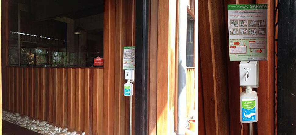 2016.06.30 カンパラのレストランでサラヤの商品を発見! カンパラ市内 ナカセロ区にある日本食レストラン 友情(Yujo)でサラヤのアルコール消毒液が使用されています!こちらは足踏み式ディスペンサーとなっており、ディスペンサーに直接触れず食事前に手のばい菌を除去することができます。 食事の際には、きれいな手でおいしいご飯を食べたいものですよね。 カンパラのレストランではこのように、衛生環境に配慮してサラヤのアルコール消毒液等を設置しているお店が続々と増えています! < 5月よりサラヤ・イースト・ア... 日経ソーシャルイニシアティ... >